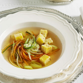 Amante del brodo fu anche il re dei cuochi, il cuoco dei re, Marie-Antoine Carême che scrisse un intero trattato sui brodi “L'arte di cucinare nell'Ottocento o trattato elementare di brodi grassi e magri, essenze, brodi, zuppe francesi e straniere” pubblicato nel 1828: tra le varie ricette di glace de viande (gelatina di carne) si trova quella di una glassa di pollo in tavolette molto simile a quella dell’anonimo piemontese che si racconta fosse stata usata da Carême per fornire una tazza di brodo caldo a Napoleone Bonaparte – che una volta disse che “un esercito viaggia con la sua pancia. La zuppa fa il soldato” – durante i suoi spostamenti e sui campi di battaglia (foto sopra).