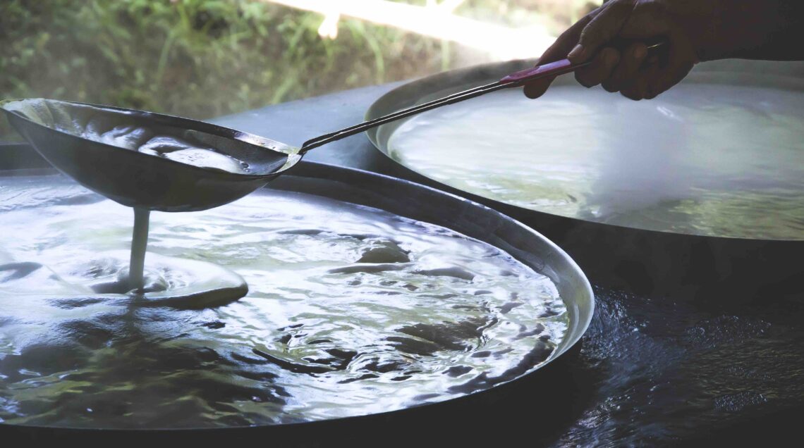 I produttori infine rompono i panetti cristallizzati (foto sotto) per avere i granuli. Il processo di raccolta e lavorazione totalmente artigianale lo rende naturalmente più costoso: se poi si parla di zucchero di cocco raw, in cui l'evaporazione in wok avviene a temperature controllate inferiori a 40° con un processo più lento, il costo sale ancora, ma i preziosi nutrienti si mantengono inalterati.
