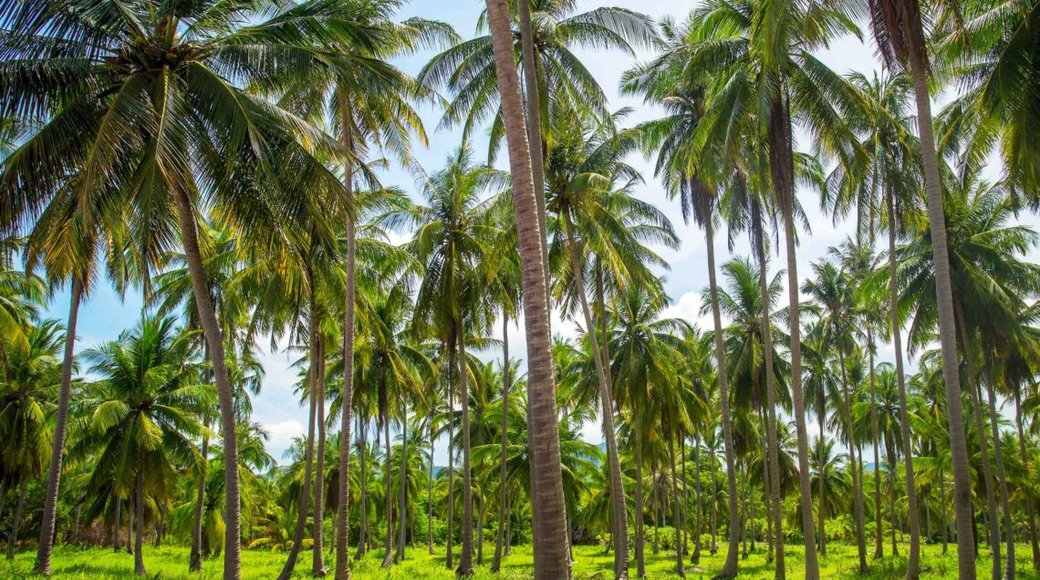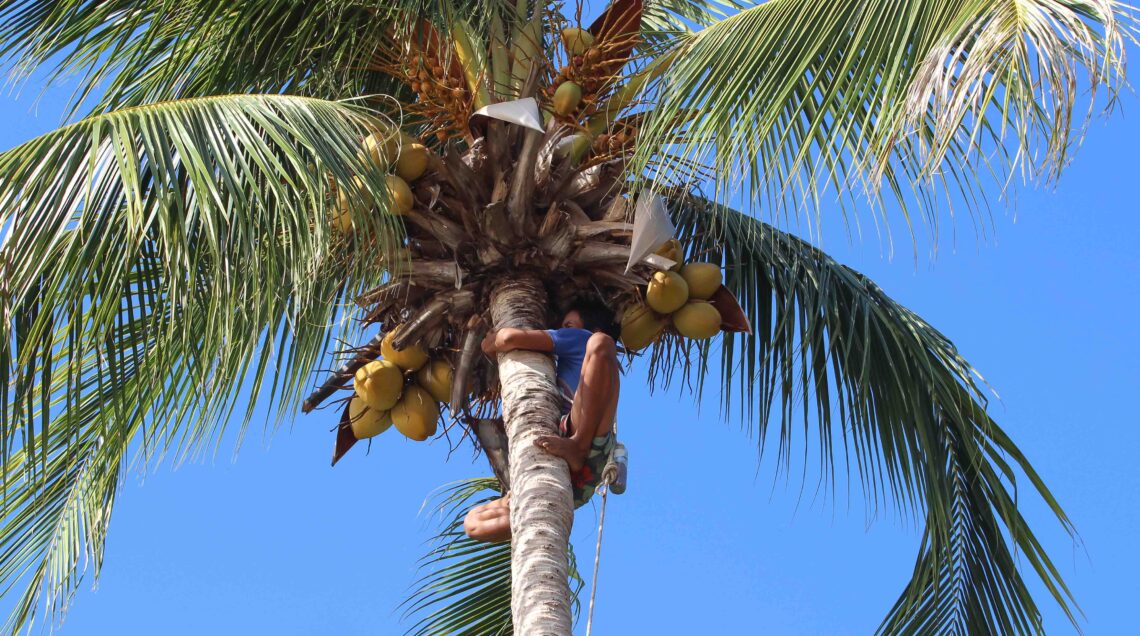 Della palma da cocco non si butta via niente: oltre a ricavarne zucchero, olio di cocco e latte di cocco, le fibre e le foglie vengono utilizzate e intrecciate dalle popolazioni locali per produrre cesti e rivestimenti per la casa.