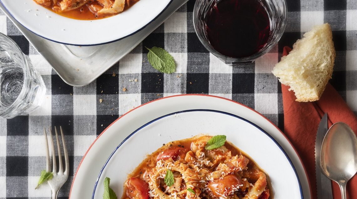 Anche per la trippa alla romana si deve fare un accenno alle tradizioni locali. Lo sapete che era il piatto tipico del sabato? Ancora oggi, fuori da alcune locande è possibile leggere “sabato trippa” per ricordare e non far decadere questa antica tradizione. La preparazione di base della trippa alla romana, come accennato poco sopra, si rifà a quella milanese ma con l’aggiunta di qualche ingrediente fresco e locale come il pecorino romano, la mentuccia e la passata di pomodoro. Volete prepararla? Provate la nostra ricetta, vi serviranno: 1 kg di trippa di bovino adulto scura e già affettata (omaso, abomaso, reticolo, rumine) – 1 cipolla bionda – 8 pomodorini Pachino – 800 g di pomodori pelati – 4 rametti di menta romana – 100 g di pecorino romani grattugiato – 1 cucchiaio di zucchero – peperoncino in polvere – olio extravergine d’oliva – sale