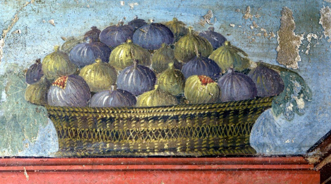 Amati e adorati dagli antichi Greci e Romani, rimasero localizzati nelle regioni del Mediterraneo e del Vicino Oriente fino al XII secolo circa. Coperta dalla lava del Vesuvio in seguito all’eruzione del 79 d.C., Villa Poppea – proprietà di Nerone a Oplontis (l’attuale Torre Annunziata) – è stata rinvenuta e inserita nel Patrimonio dell’Umanità dall’Unesco nel 1997. All’interno della villa, un affresco raffigura un sontuoso cesto di fichi (foto sotto).