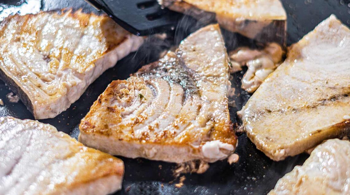 Tra i piatti tipici di Lampedusa e Linosa, uno dei più rappresentativi è senza dubbio il pesce spada all’acqua di mare, preparazione che esalta il sapore autentico del mare e la qualità del pesce fresco. Questo pesce, molto diffuso sull’isola, viene cucinato in diverse varianti, ma questa ricetta spicca per la sua semplicità e per il gusto deciso. Per ottenere il miglior risultato, il pesce spada deve essere rigorosamente appena pescato. I tranci vengono lavati in acqua di mare e cotti in padella senza olio, fino a quando i liquidi in eccesso non si saranno consumati. Solo alla fine si aggiungono olio extravergine, succo di limone, aglio, origano e prezzemolo: pochi ingredienti, ma capaci di restituire tutto il profumo e la freschezza del Mediterraneo.
