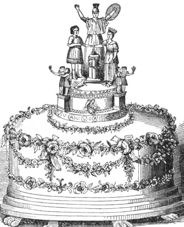 Il dolce era enorme, circa 3 metri di circonferenza, composto da tre livelli alti 36 centimetri che pesavano ognuno più di 136 chili, il tutto bagnato da quasi 6 litri di brandy. All’interno, un “cuore” inglese – il classico plum cake realizzato con burro, zucchero, farina, uova, ciliegie, ribes, canditi, mandorle tritate, spezie miste e sale – e un tocco decorativo dal flair tutto francese all’esterno, richiesto dalla regina in persona. La torta era completamente e pesantemente glassata con la classica ghiaccia reale che, sfatando il mito che la volesse chiamata così perché ideata per l’augusta occasione, appare settant’anni prima delle nozze di Vittoria nella prima edizione del volume The Court and Country Confectioner (1770), firmata da un Anonimo Geniale (oltre che modesto) che più tardi si rivelò essere Mr. Borella, capo pasticcere dell’ambasciatore spagnolo in Inghilterra.