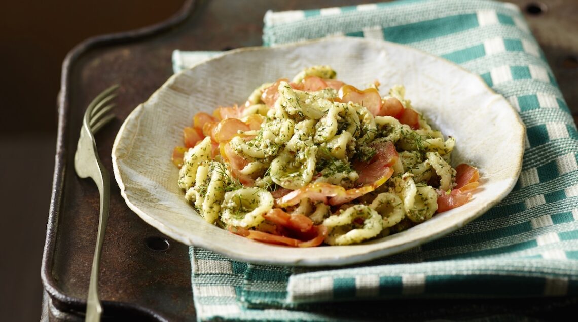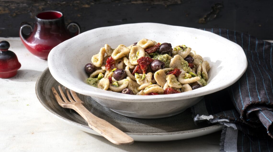 Originale è infine anche la variante dalle orecchiette fredde con pesto e mandorle che vedete qui sopra. Profumate dal finocchietto, saranno perfette, per temperatura di servizio e ingredienti freschi, sulla tavola della bella stagione.