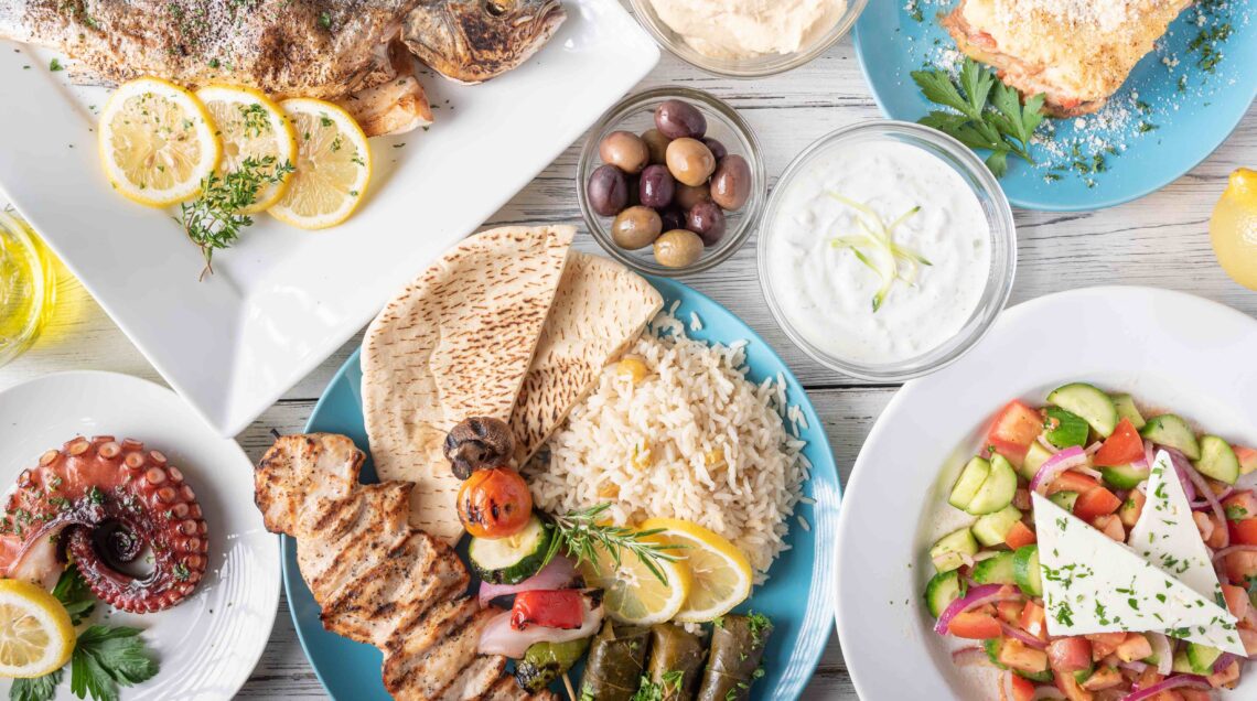 Tutte servite con tzatziki, la ricca salsa a base di yogurt greco, cetriolo e aglio, solitamente insaporita con aneto (foto sopra). Altri dip tipici della cucina greca che fanno parte dei meze sono la crema di uova di pesce frullate con cipolle, olive, olio d’oliva e aglio chiamata taramosalata – tradizionalmente uova di carpa, ma vengono usate anche uova di merluzzo, salmone o lompo; dal tipo di uova dipende il colore della taramosalata (varia dal bianco al rosato) – e la melitzanosalata, a base di melanzane, che ha un gusto fresco e leggermente acidulo, dato dalla presenza dello yogurt greco. Melitzanosalata e tzatziki spesso accompagnano carne e pesce alla griglia. Tutte le salse vengono servite con triangoli di pane pita per intingere. Da provare anche tirokafteri, una salsa piccante a base di feta.