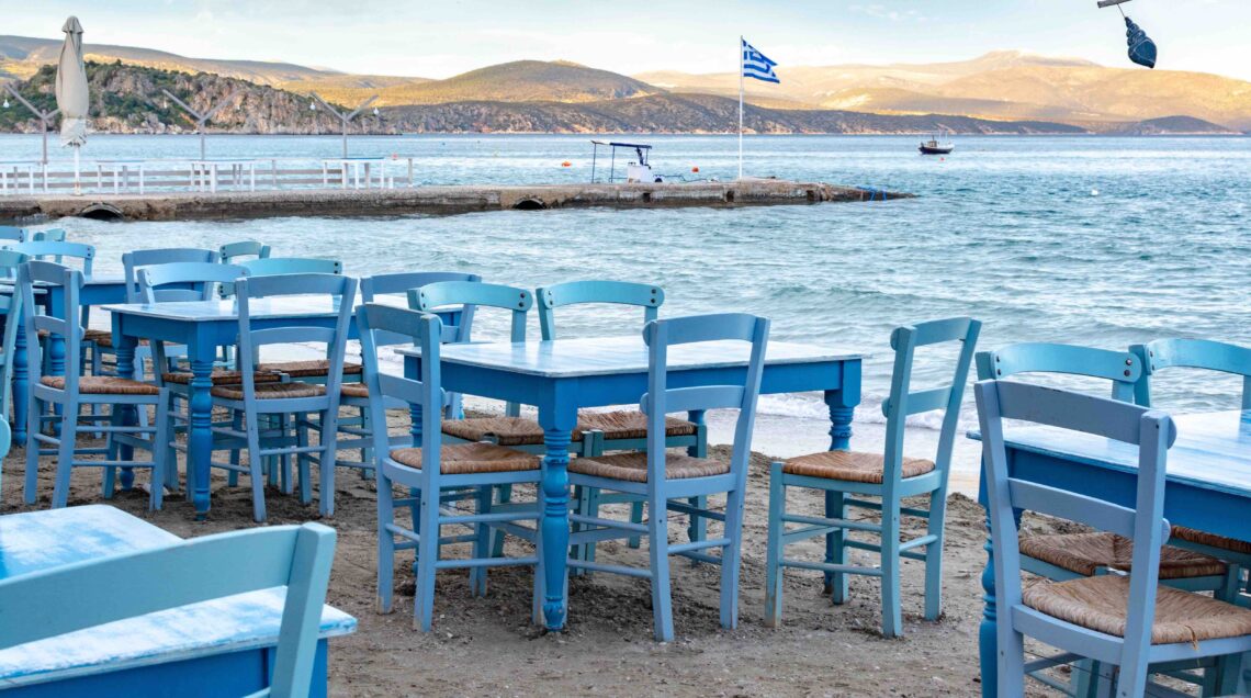 Per i Greci meze significa molto di più, poiché il termine ne incorpora il modo di vivere mediterraneo e il desiderio di stare insieme. Mezedopoleio, ouzeri e tsipouradiko indicano tutti un ristorante o taverna greca (foto sotto) dove gustare i meze in allegria; i piatti sono in comune, i bicchieri pieni, la conversazione animata e il ritmo piacevole. Le persone sono incoraggiate a unirsi al gruppo, i tavoli vengono accostati per accogliere nuovi arrivati e vengono ordinati altri meze e bevande.