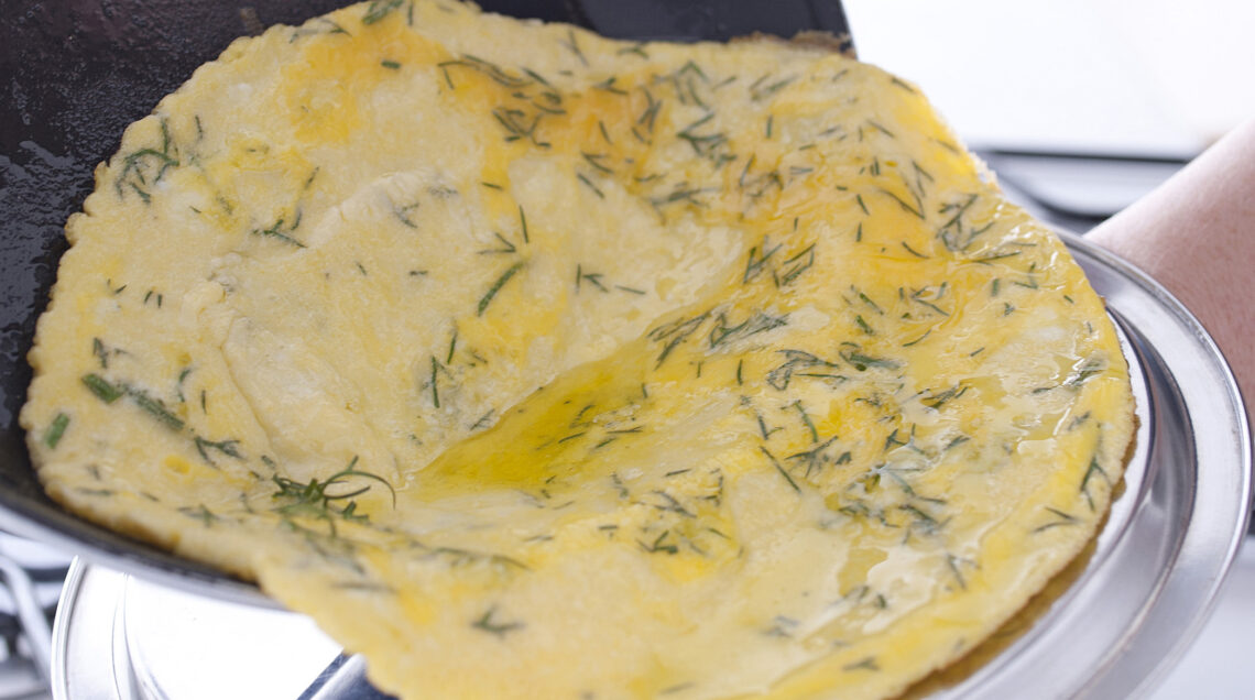 Una versione più leggera della classica frittata è realizzata con i soli albumi (foto sotto) - può tornare utile se avete degli albumi rimasti da un’altra ricetta (per esempio la crema pasticcera, che impiega solo tuorli).