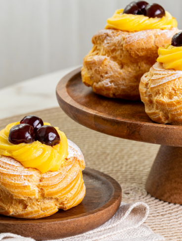 Trovate la ricetta delle zeppole di San Giuseppe fritte qui e quella della crema pasticcera qui.