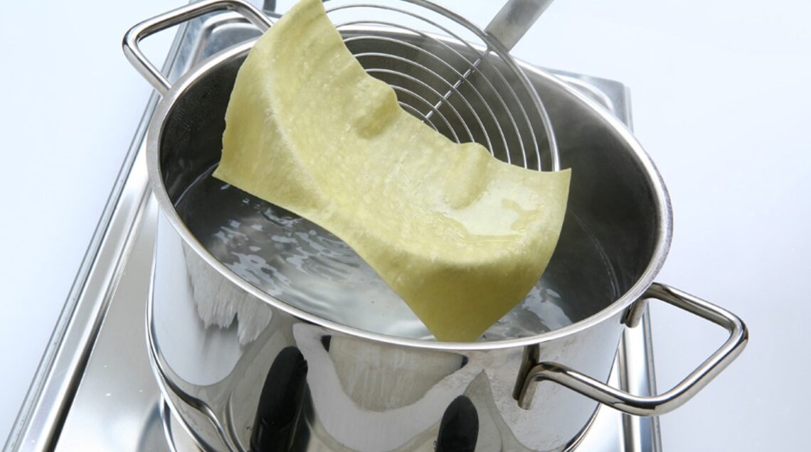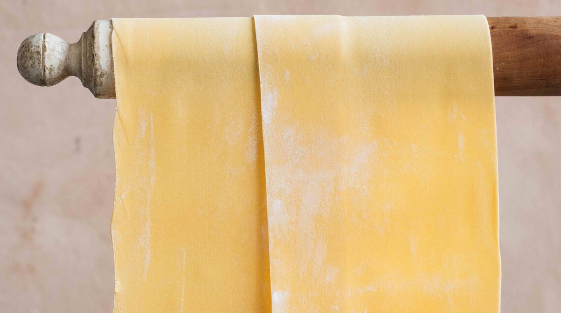 Arrivati al Rinascimento, nell’impasto delle lasagne – finora composto da sola acqua e farina di grano tenero – vengono impiegate le uova al posto dell’acqua, ottenendo una pasta più elastica e tenace (foto sopra). Le lasagne del periodo venivano utilizzate come semplice sfoglia di contenimento di un ripieno, sposando pasta e piatti di carne.