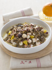 Questo primo dal ripieno agrodolce è un tipico piatto del periodo invernale e delle festività natalizie (foto sopra). La leggenda vuole che la nascita del Tortél Dóls risalga all'epoca della Duchessa Maria Luigia d'Austria, moglie di Napoleone e sovrana del Gran Ducato di Parma e Piacenza (XIX secolo): la ricetta tradizionale è oggi depositata alla Camera di Commercio di Parma. Lo straordinario ripieno del Tortél Dóls è retaggio esclusivo del suo luogo d’origine, al punto che già nella vicina Parma (a soli 15 chilometri) questa tradizione è sconosciuta. Anche gli ingredienti (foto sotto) - mostarda rigorosamente fatta in casa, pere nobili, zucca da mostarda (cocomero bianco), mele cotogne, limoni, oltre a pan grattato e vin cotto - vanno cercati nell’area di Colorno, dove vengono ancora coltivati (pur non essendo adatti al consumo da tavola) per la preparazione delle mostarde. Nel 2008 nasce la Confraternita del Tortél Dóls a Sacca di Colorno, lungo le sponde del Po.
