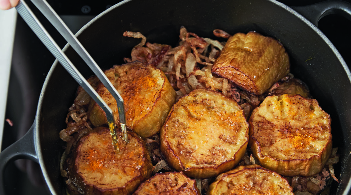 Un secondo di carne verace dai sapori decisi. le melanzane raddoppiano la consistenza della carne suina, regalando ghiotti bocconi