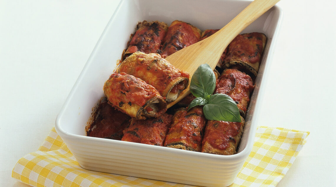 Le melanzane rimpiazzano la pasta sfoglia e diventano scrigni di un gustoso ripieno di prosciutto, scamorza, uova e pomodoro.