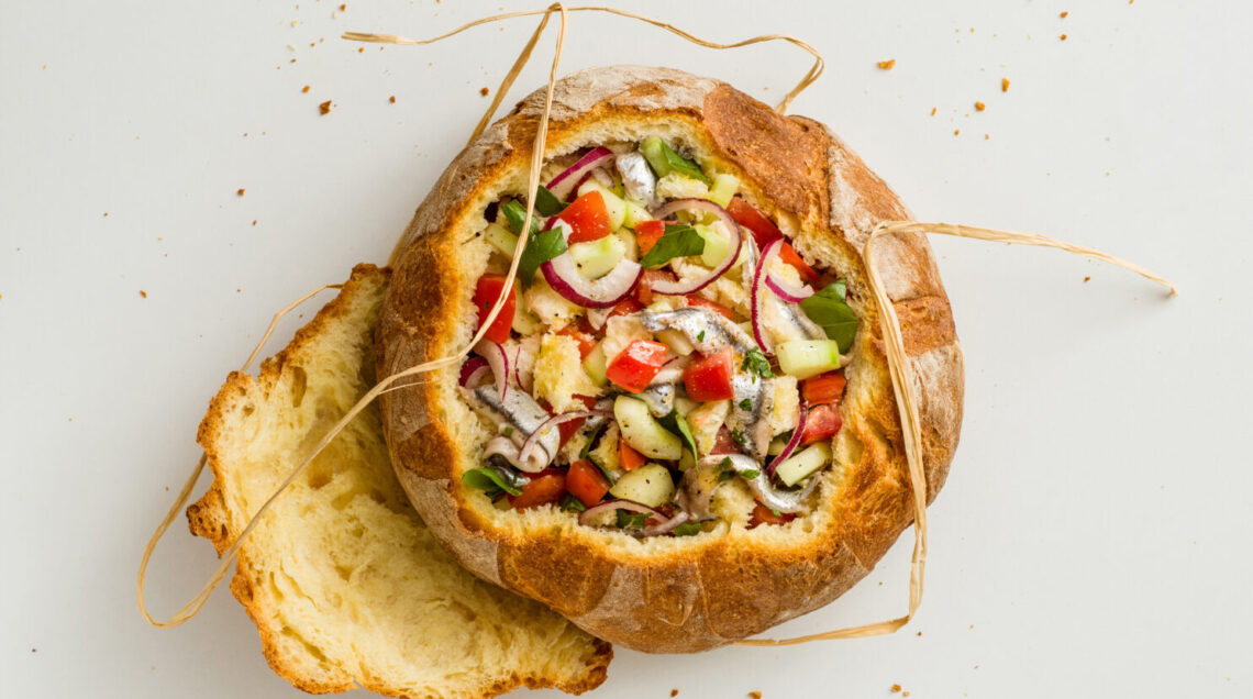 Un piatto tipico dell'Italia centrale a base di fresche verdure di stagione un tempo servito all'interno di una croccante pagnotta di pane