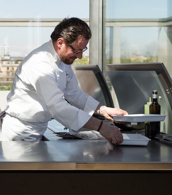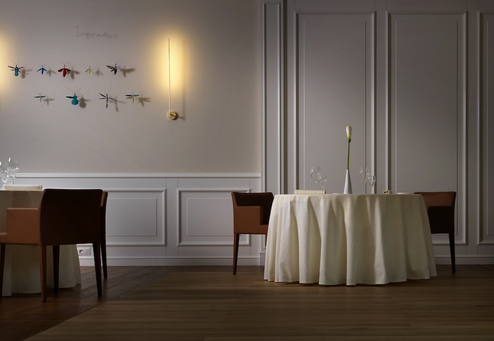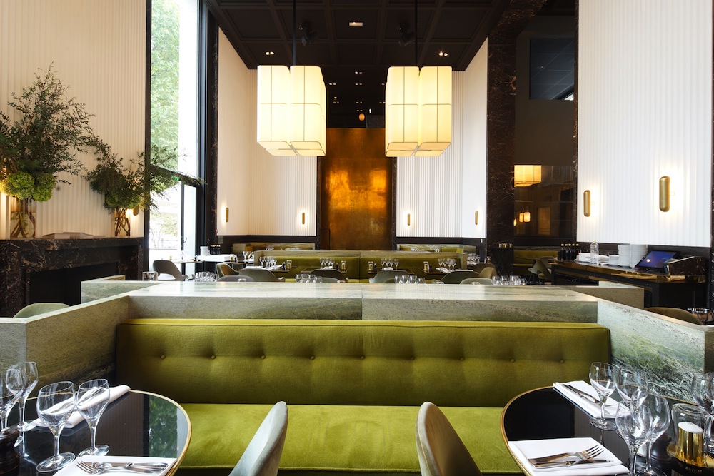 La sua cucina è raffinata e giocosa, attenta agli ingredienti di altissima qualità e di stagione. Per pranzo si può scegliere tra un’insalata di avocado, cetriolo e menta o un king crab marinato con basilico e borragine. E ancora: gnocchi di patate con ravanelli e tartufo nero; spigola con cassoulet di piselli e fave; salmone bollito condito con olio d’oliva extravergine, tartufo nero e sedano rapa. La pasticceria è guidata dal coreno Jiho Kim, che arriva dal ristorante di Gordon Ramsay a New York. La scelta dei vini è invece affidata al Master Sommelier Michaël Engelmann. L’ambiente luminoso comprende anche il Room Bar con cucina à la carte dello chef Abram Bissell, dove si possono consumare cocktail preparati con grande cura.