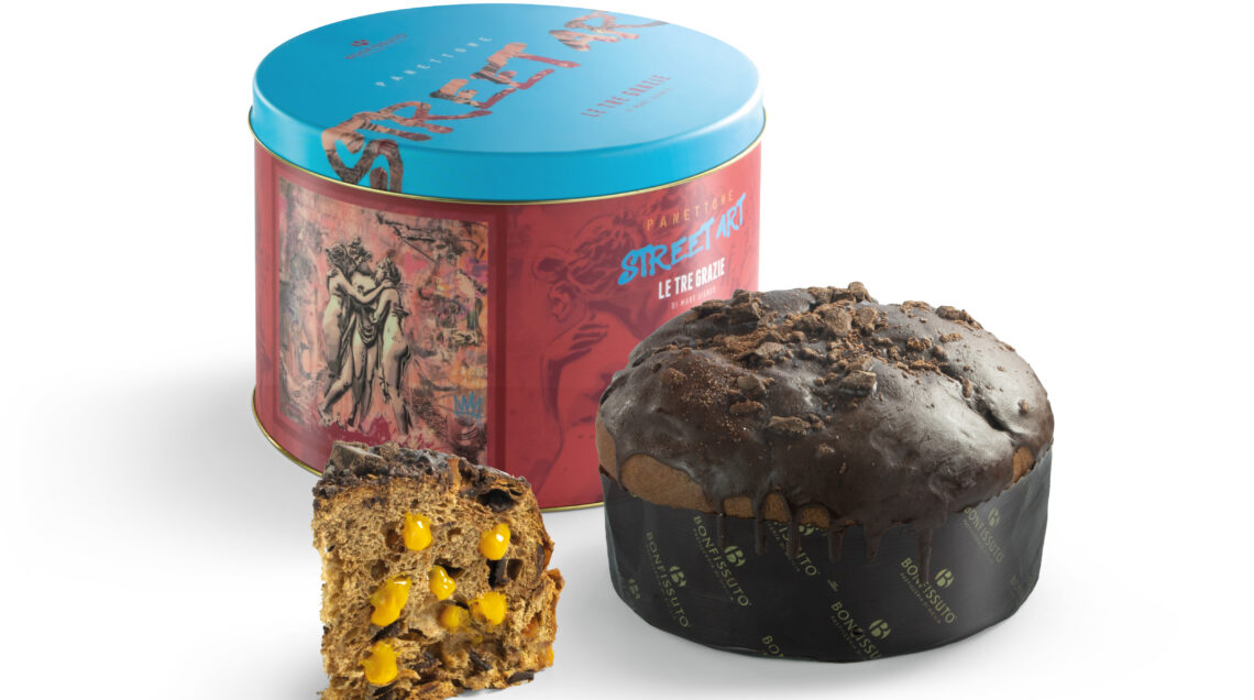 Tra le novità di quest'anno disponibili anche online rientra il panettone dei fratelli e pasticceri siciliani Vincenzo e Giulio Bonfissuto, realizzato a lievitazione naturale con impasto al gianduia, gocce di cioccolato fondente e crema allo zabaione e marsala. Ciò che rende ancora più particolare questo dolce da forno è la latta in cui è venduto, creata dallo street artist Mart Signed. Si tratta, infatti, di un omaggio alla street art, realizzato con spray, stencil e vernice su carta telata. Le figure rappresentate sulla latta derivano dalla mitologia greca e corrispondono alle Tre Grazie, figlie di Zeus e della ninfe Eurinome. Un'opera dal significato simbolico, dato che queste figure rappresentano le dee della gioia, del fascino e della bellezza, trasmettendo felicità e amicizia. Insomma, un connubio perfetto tra arte e golosità, che renderà questo Natale ancora più dolce e colorato.
