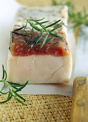 Vallée d’Aoste Lard d’Arnad Dop: se il culatello è il re dei salumi, questo è il principe della salumeria valdostana. La prima testimonianza ufficiale risale al 1570, quando Lino Colliard, celebre storico della Valle d’Aosta, in un manoscritto cita la distribuzione di lardo d’Arnad ai bisognosi da parte del monastero di Sant’Orso. Unico lardo al mondo a potere fregiarsi della Dop, questo grasso nobile ha una tracciabilità severamente regolamentata: viene da maiali di peso superiore ai 200 kg, provenienti da allevamenti nazionali delle regioni Valle d’Aosta, Piemonte, Lombardia, Emilia-Romagna e Veneto. È lavorato artigianalmente dal solo spallotto sgrassato, squadrato e messo poi a stagionare nei doils (in dialetto patois), antichi recipienti di forma cubica in legno di rovere, larice o castagno, dove trascorre almeno tre mesi in acqua, sale ed erbe aromatiche di montagna (ginepro, rosmarino, alloro, lauro, pepe, noce moscata, salvia). Ogni fetta è bianca al taglio, con una possibile venatura di carne in superficie e cuore leggermente rosato, e sprigiona il caratteristico profumo. Il sapore dolce lo rende un eccellente antipasto, gustato al naturale, magari abbinato a pane nero di segale, il locale pan dür, e miele di castagno. Si scioglie in bocca.