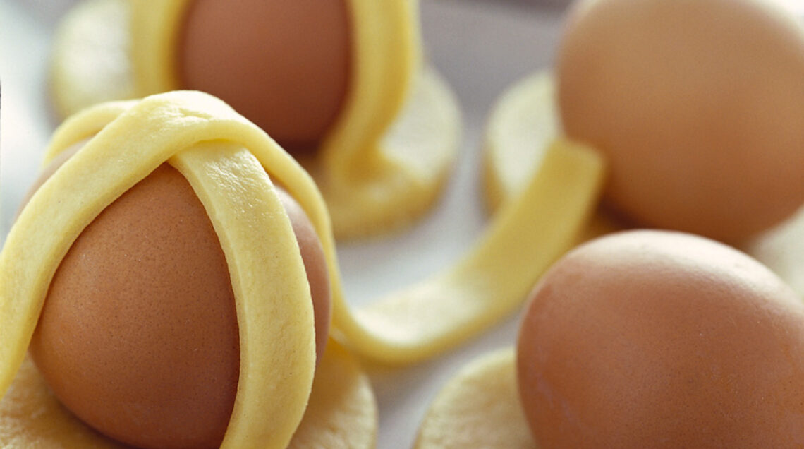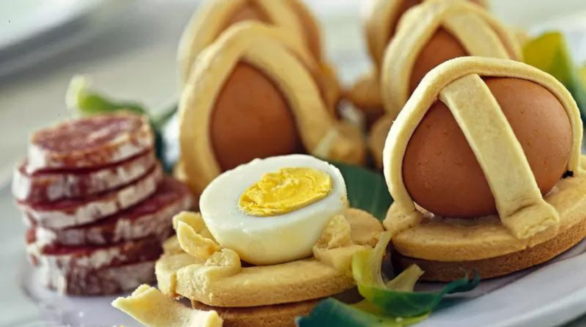 “Non c’è Pasqua senza uova” recita un antico detto popolare, perché questo cibo è l’essenza stessa della vita che riprende, della primavera e della speranza. Sode, le uova sono una colazione tradizionale di molte regioni del Centro. Noi le proponiamo ingabbiate in una friabile pasta al formaggio, prendendo spunto da una ricetta genovese. Ideali a Pasquetta, con un buon salame e un calice di Falerio dei Colli Ascolani, bianco vigoroso.