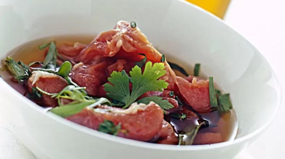 Il manto di croccante pancetta nasconde un delizioso ripieno in cui si fondono piselli e capretto: ingrediente, quest’ultimo, altrettanto evocativo dell’agnello, e alternativo. L’idea di fare una terrina come piatto forte è una soluzione eccellente, gustosa e pratica, perché si può preparare anche il giorno prima. Accompagnatela con un Aglianico del Molise: un vino che ha sulle carni ovine e caprine una vocazione ampiamente documentata, di grande finezza.