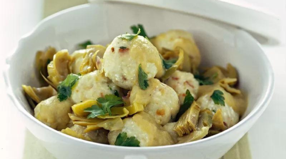 4) Cuocete gli gnocchetti in acqua in leggera ebollizione salata, scolateli quando emergono in superficie e conditeli con la salsa di carciofi.