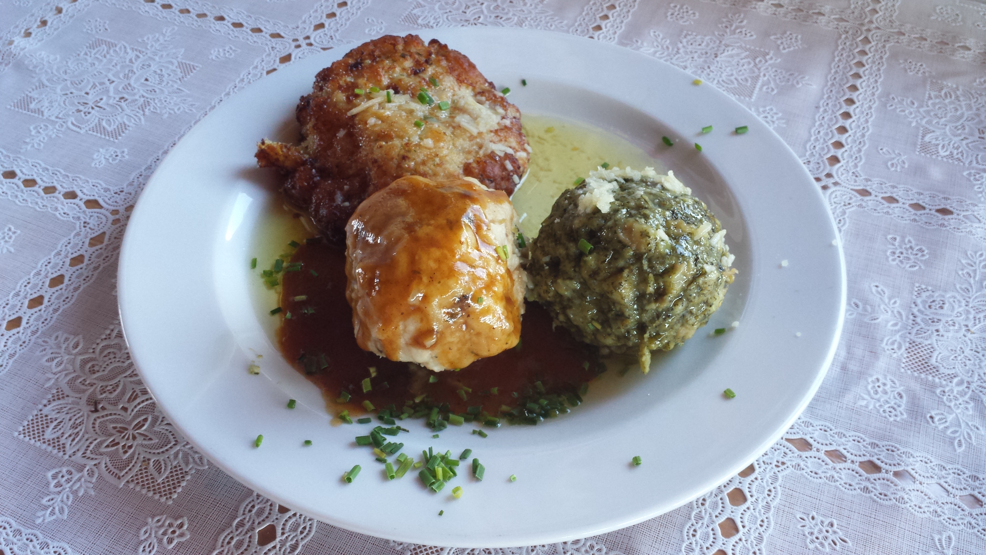 che offre molte tipicità tirolesi come la Wiener Schnitzel (la cotoletta!) accompagnata dalla salsa o meglio marmellata di mirtilli rossi o le Kaiserschsmarren, grande omelette fatta a strisce, zuccherata e accompagnata dalla medesima marmellata, che qui oltre alla farina include tra gli ingredienti il semolino.