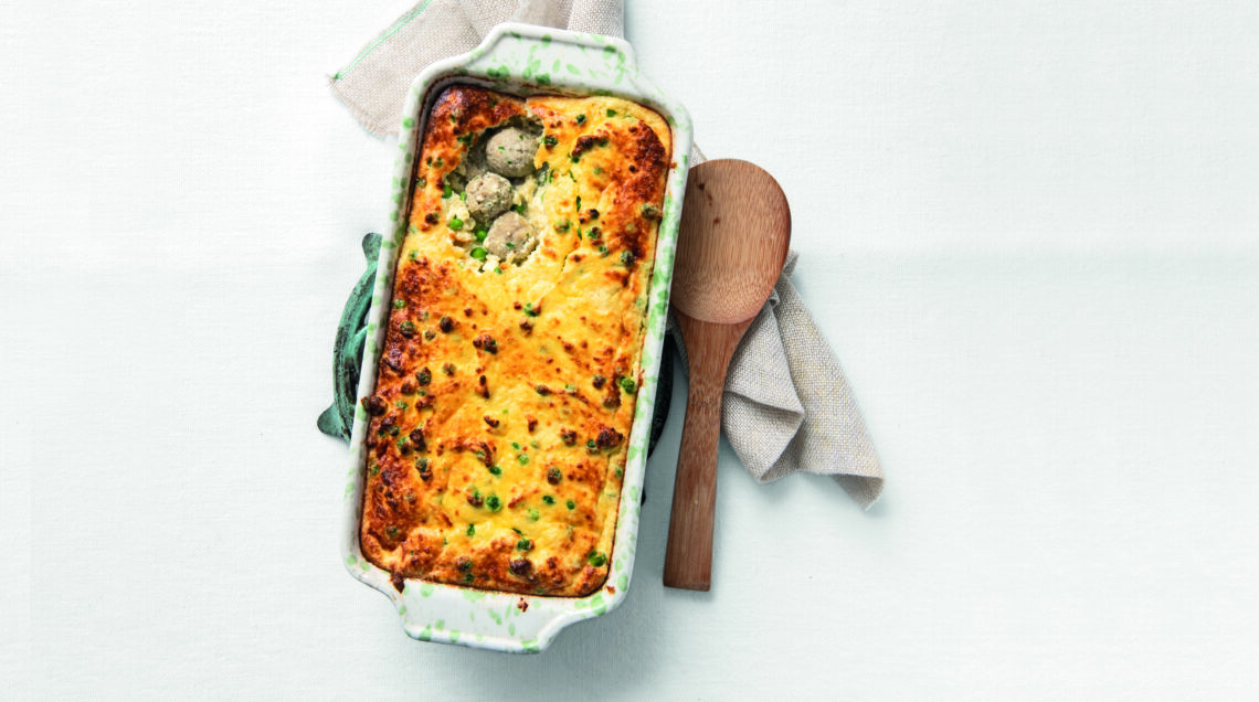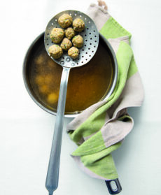 Mettete le polpettine in una pirofila da forno e versarvi sopra il brodo caldo in modo che arrivi a 2-3 cm dal bordo. Disponete sul brodo il composto di ricotta a cucchiaiate e infornate a 200° per 30 minuti circa. Servite subito.