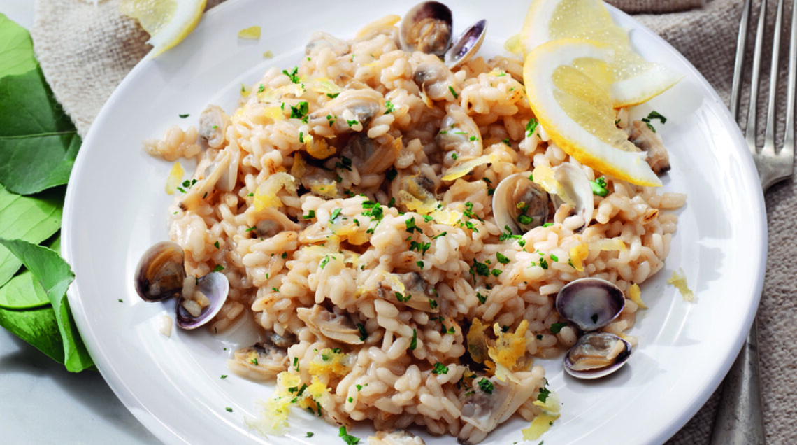In questa ricetta il gusto verace delle vongole sposa l'aroma inconfondibile del pregiato agrume per un risotto delicatissimo