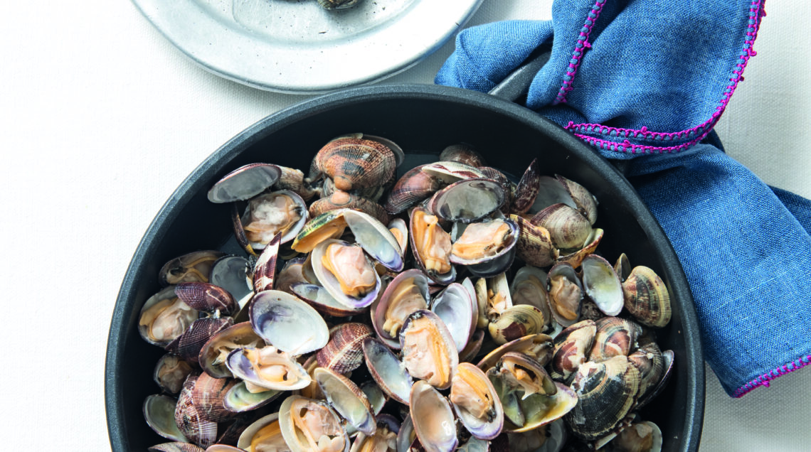 Le vongole spadellate con olive, sedano e pinoli sono squisite con gli spaghetti. Al profumo di maggiorana