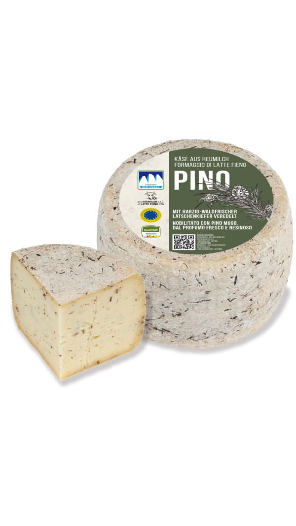 La storica cooperativa altoatesina di Dobbiaco Latteria Tre Cime produce questo formaggio da taglio Pino: il gusto è delicato e presenta note di latte e burro, nobilitato da pino mugo dal profumo fresco e resinoso. È preparato con Latte Fieno puro e di altissima qualità, proveniente da mucche alimentate con erba fresca, fieno e piante di campo e riconosciuto con il marchio europeo STG, non vengono utilizzati mangimi Ogm, insilati e fieni fermentati. Dalla consistenza morbida e soffice di colore giallo tenue, con occhiature nell'impasto, è perfetto da assaporare a fine pasto o per arricchire contorni e gustosi aperitivi