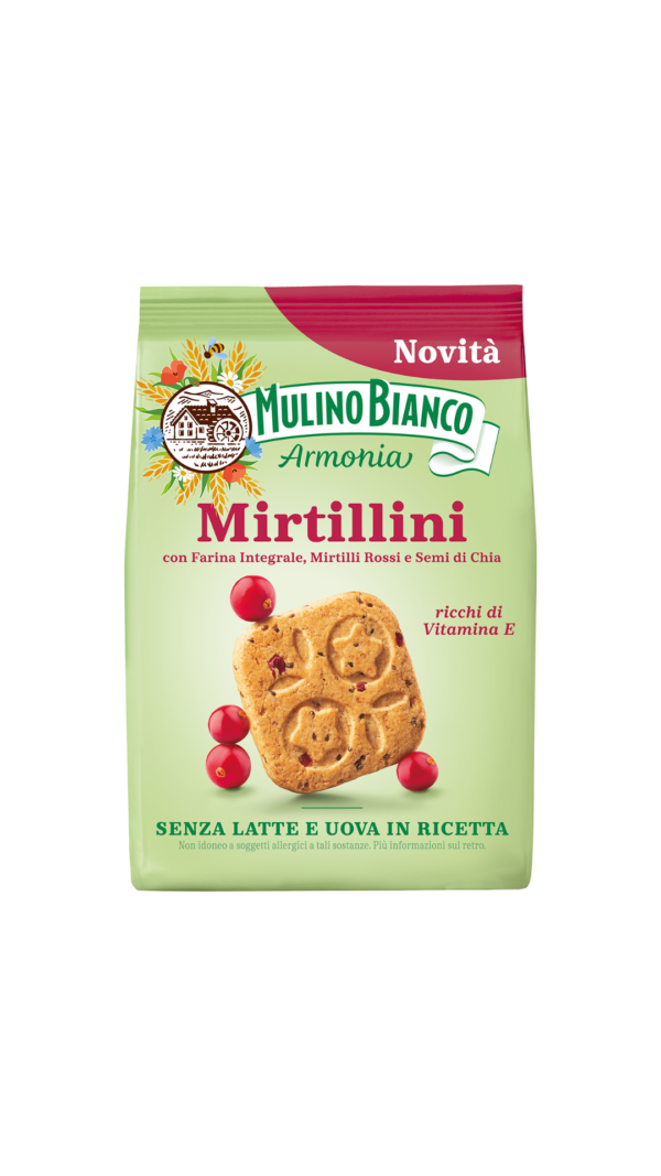 Grazie alla nuova linea Armonia di Mulino Bianco il gusto incontra il benessere. Dall'indagine svolta da Nielsen per Mulino Bianco, 1 italiano su 3 sta più attento agli aspetti “healthy” nella scelta degli alimenti per la colazione e per gli snack. Così la gamma Armonia accompagna i consumatori a partire dalla prima colazione: nuovi biscotti come Mirtillini con farina integrale, mirtilli rossi e semi di chia, senza latte e uova (270 g, € 2,99 circa) si affiancano ai Buonfarro, i Cioccoavena, le Cecille, i PandiYò con yogurt, i Cioccosole e i Fior di Miele senza glutine e senza lattosio... Tantissime sono le nuove referenze, dolci e salate, avvolte nel nuovo pack verde che rappresenta la natura, l'armonia e l'equilibrio. Tutte pensate per essere gustate in ogni momento della giornata