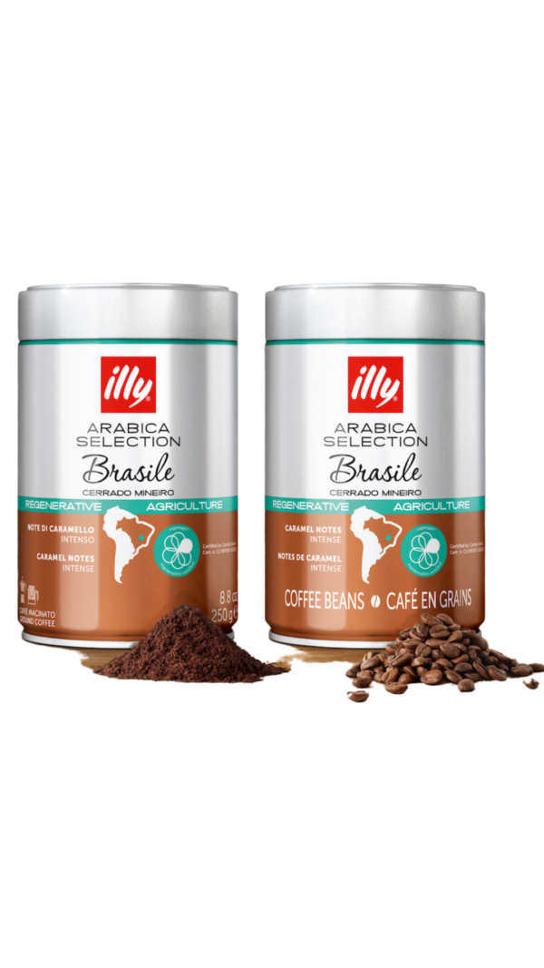 Arabica Selection Brasile del Cerrado Mineiro di Illy arriva dalla regione brasiliana dove l'azienda lavora da oltre 30 anni con i produttori locali, applicando le pratiche rigenerative certificate regenagri®. Illycaffè è da tempo impegnata a mitigare gli effetti del cambiamento climatico lungo tutta la filiera, a iniziare dalla coltivazione del caffè. Il modello sostenibile rigenerativo permette di nutrire in modo corretto le piante, rigenerando naturalmente i suoli, diminuendo quindi le emissioni di CO2 e migliorando la salute dell'ecosistema grazie all'accresciuta biodiversità. Questo caffè ha sfumature di gusto di caramello e frutta secca e si trova in grani o macinato