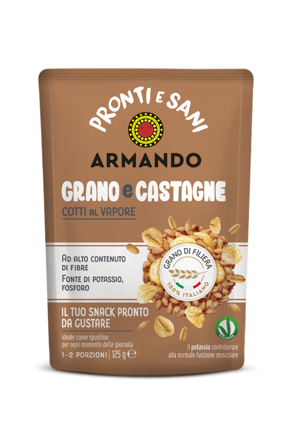 Poco tempo per cucinare? Fate scorta dei Pronti e Sani di Pasta Armando! Sono sfiziosi mix cotti al vapore e conditi con olio extravergine di oliva, a base di grano 100% italiano uniti a legumi o frutta di provenienza italiana. Nelle confezioni in atmosfera protetta si trovano: solo grano, grano e ceci, grano e lenticchie, grano e castagne, pronti da gustare al naturale o per per arricchire sfiziose zuppe e tenere insalate