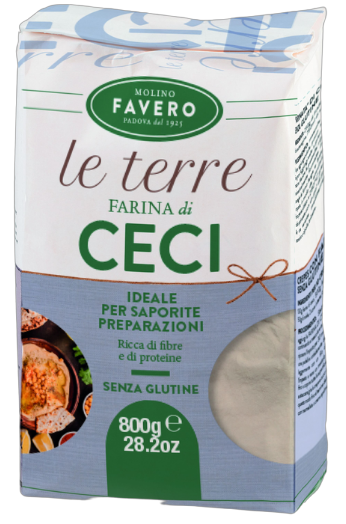 La Farina di Ceci fa parte della linea Le Terre di Molino Favero ed è prodotta con un esclusivo metodo di macinazione; questa farina è ideale per preparare creme, dolci o, miscelata ad altre farine, per alleggerire impasti dolci o salati e per facilitarne la lievitazione. Come la Farina di Riso e quella di Mais Giallo Finissimo, sempre della linea Le Terre, proviene da coltivazioni italiane con assenza di coloranti, senza glutine, soia, lattosio e Ogm