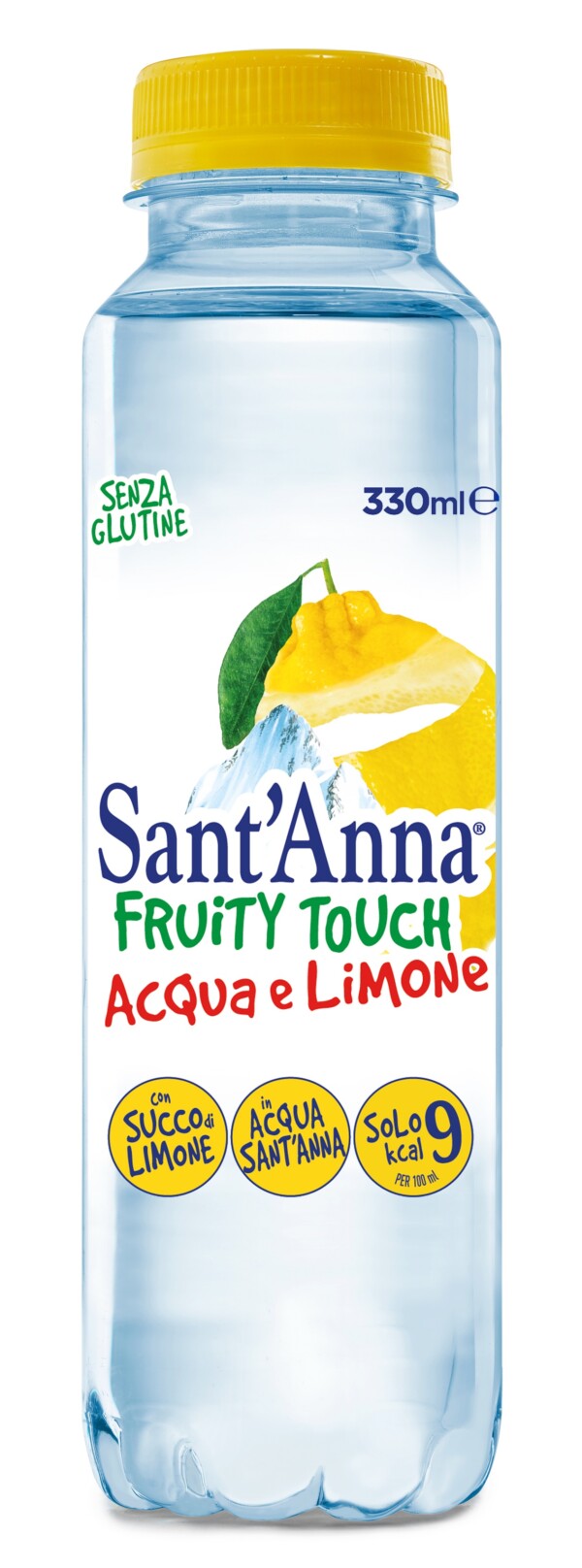 Per dissetarsi al sole d'estate è un vero piacere sorseggiare Sant'Anna Fruity Touch Acqua Limone senza conservanti né coloranti, gluten free e a basso contenuto calorico; gli ingredienti sono due: acqua minerale naturale Sant'Anna e un tocco di succo limone; è proposta anche con lime, zenzero e guaranà o con frutti rossi