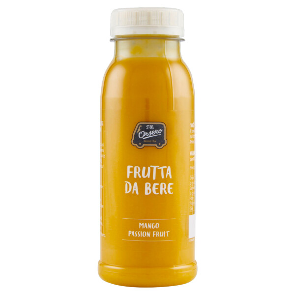 Fresco, buono, non pastorizzato e 100% naturale, Mango Passion Fruit della linea “Frutta da Bere” di F.lli Orsero ha consistenza vellutata ed è ricco di fibre; il frutto della passione è aromatico e contiene sali minerali - ferro, magnesio, potassio e fosforo – e vitamine A e C; mentre il mango è ricco di vitamina C e A. La frutta di alta qualità è lavorata a freddo così da mantenere intatte le proprietà organolettiche e nutrizionali
