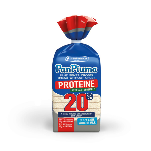 Perfetto per preparare tramezzini, sandwich e tartine, Pan Piuma Proteine è ricco di proteine vegetali (20%) ed è senza lattosio, pensato per chi ricerca prodotti sani, gustosi e con alti principi nutritivi: due fette di pane contengono 10 g di proteine, la porzione ideale per una sana colazione o un pranzo nutriente; mentre i carboidrati sono ridotti del 35% rispetto alla media di pani senza crosta sul mercato. In più, Pan Piuma Proteine si è aggiudicato il premio Quality Award 2024