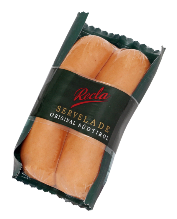 Ingredienti perfetti per un picnic in alta montagna, i würstel Servelade di Recla sono molto gustosi cotti alla griglia, oppure scottati in acqua bollente, accompagnati da crauti o come sfizioso ingrediente di un'insalata o di una pasta fredda; si distinguono per l'eccezionale qualità della carne suina leggermente affumicata con legno di faggio, con spezie e aromi naturali, senza polifosfati, glutammati, glutine e lattosio