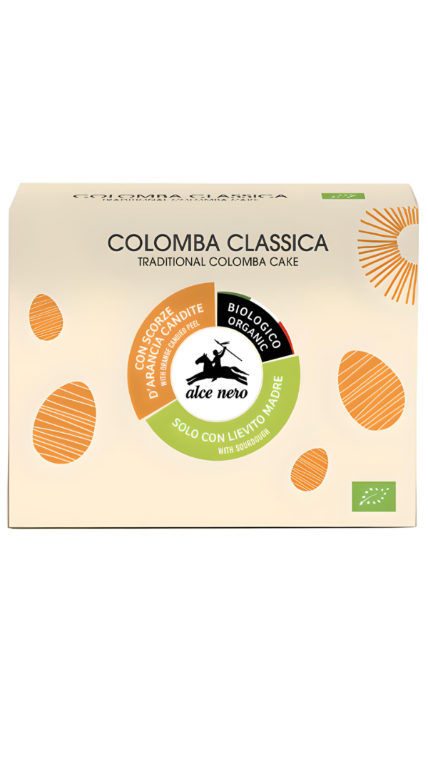 Recenti sondaggi rivelano che la maggior parte degli italiani pone molta attenzione su prodotti alimentari di alta qualità, meglio se naturali e biologici. Così Alce Nero, marchio impegnato fin dagli anni Settanta nella produzione di cibi buoni, frutto di un'agricoltura che rispetta la terra, porta sulla tavola di Pasqua la Colomba Classica Biologica a lievitazione naturale, ricoperta di glassa con granella di zucchero e mandorle, con impasto arricchito da scorze di arancia candite