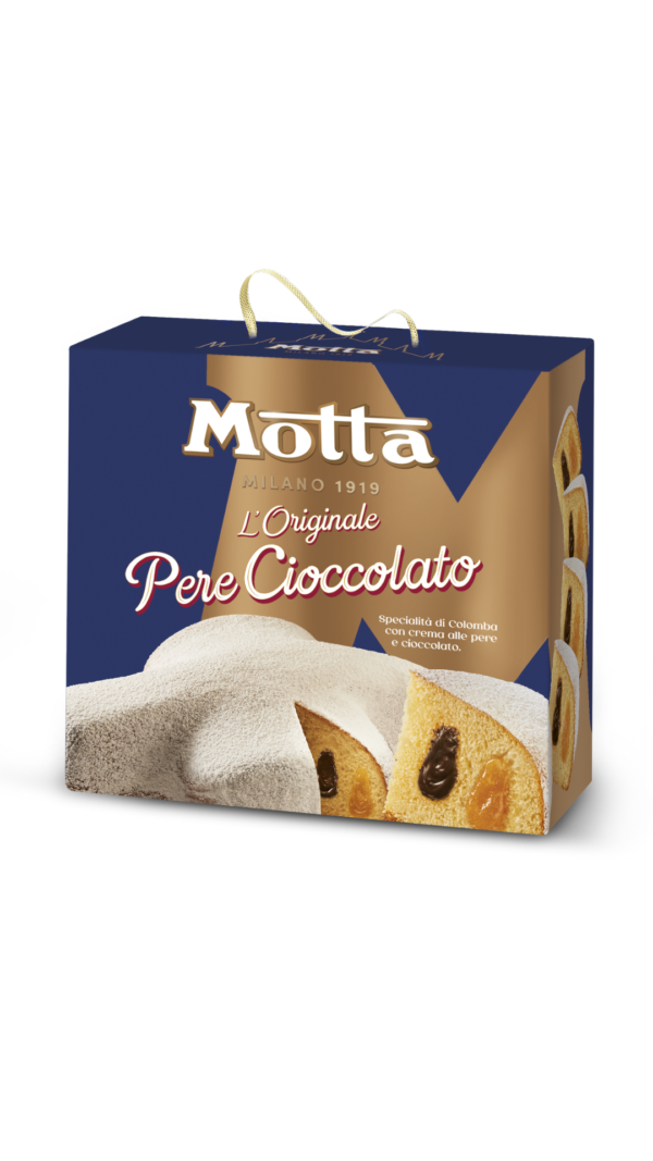 È firmata Motta la colomba Pere e Cioccolato, un abbinamento gourmet al quale è difficile resistere: il gusto intenso della crema al cioccolato sposa il delicato sapore della crema alle pere, la lenta lievitazione naturale dona all'impasto grande sofficità; questa colomba fa parte della linea Speciali-L'Originale che comprende la colomba Pistacchio e Cioccolato, quella Caramello Cioccolato e la colomba Vaniglia Gianduia
