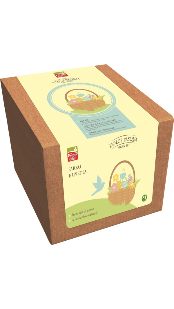 I sapori tradizionali della Pasqua certificati Vegan Ok! si trovano nel Dolce con farina di farro e uvetta sultanina bio proposto da La Finestra sul Cielo che da oltre 40 anni sostiene e promuove prodotti biologici, come questo dolce pasquale realizzato con farina di farro e pasta madre, dalla consistenza soffice grazie alla lievitazione naturale, senza olio di palma