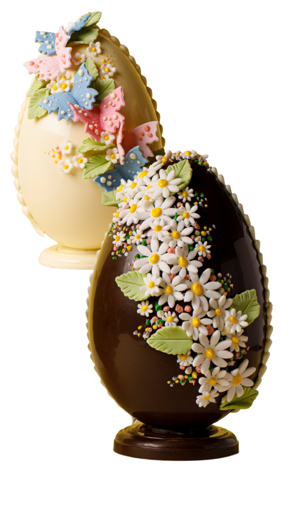 La Pasqua è anche la festa di Primavera e porta con sé i sapori semplici della natura che si risveglia, in armonia con il suo religioso senso di rinascita e con il simbolismo di alcuni capolavori di pasticceria, come le uova al cioccolato. L'uovo è tra i simboli più antichi e da sempre, grazie alla sua forma perfetta, simboleggia la vita e la creazione. Le uova al cioccolato sono il simbolo della Pasqua, con il loro gusto pieno e rotondo conquistano tutti. Quelle al cioccolato fondente sono preferite dagli adulti, mentre quelle più dolci al latte fanno impazzire i bambini. Un buon uovo di cioccolato deve essere lucido, senza macchie, e produrre un rumore secco quando si rompe: vuol dire che il burro di cacao è cristallizzato al punto giusto. È bene conservarlo avvolto nella carta stagnola, in un luogo fresco e asciutto.