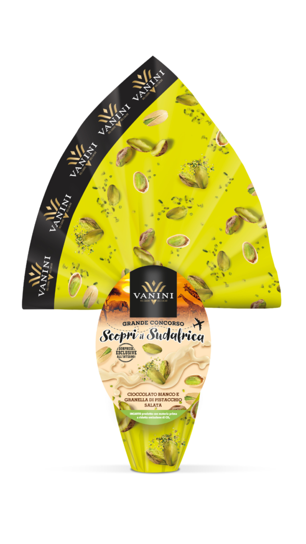 Vanini, premium brand di Icam, presenta la nuova linea di uova di Pasqua “Tasting Experience” tra cui l'Uovo al cioccolato bianco con granella di pistacchi salati, una vera delizia per il palato: le note di latte e miele donano una piacevole dolcezza, bilanciata dalla croccantezza della granella di pistacchio salato che stuzzica il palato. Quest'anno, inoltre, con il concorso “La Pasqua Vanini ti porta a scoprire le bellezze del Sudafrica” ci sarà in palio un'esperienza esclusiva per due persone alla scoperta delle meraviglie del Sudafrica.