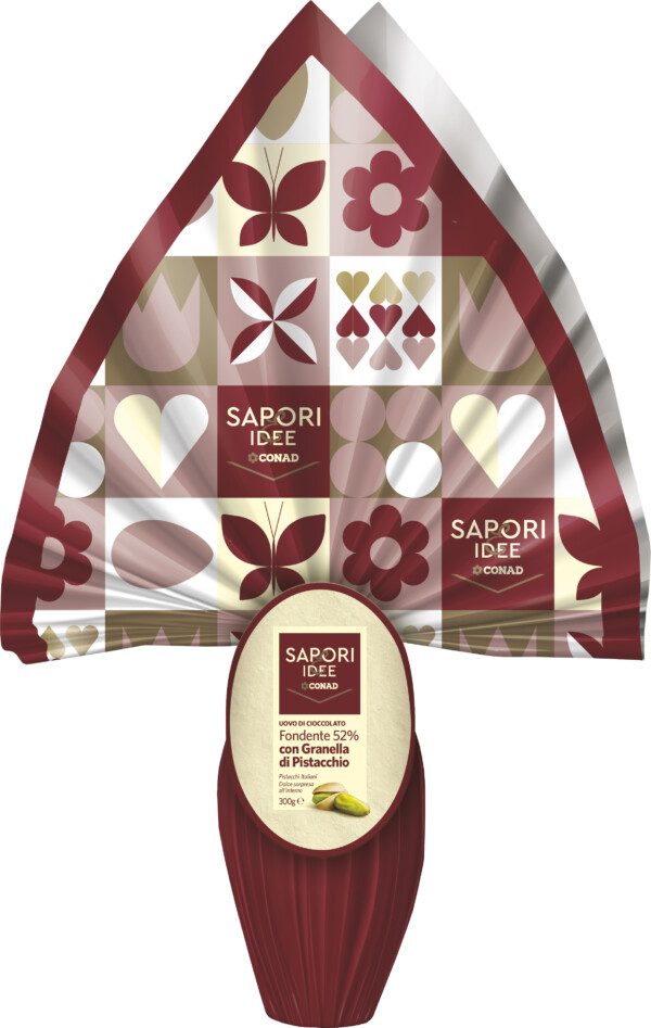 Ingredienti Made in Italy e accurata selezione delle materie prime offrono nuove esperienze di gusto agli appassionati di cioccolato. Per una Pasqua tutta da “assaporare” Conad porta sugli scaffali l'uovo di cioccolato al latte con 40% di nocciole intere e l'uovo di cioccolato fondente 52% con granella di pistacchio (in foto), entrambi della linea Sapori&Idee