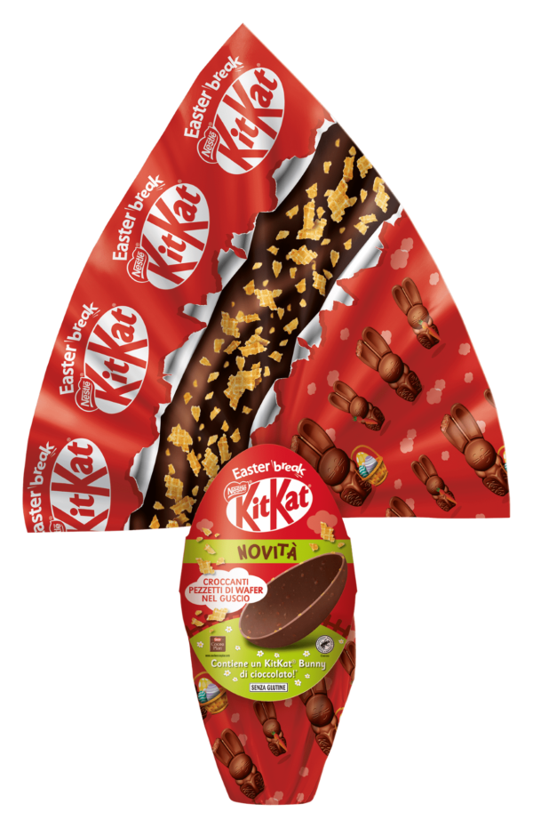 Grazie a KitKat nasce il nuovo break pasquale sotto forma di uovo al cioccolato al latte con croccanti pezzetti di wafer nel guscio, ispirato alla mitica ricetta che ha reso lo snack famoso in tutto il mondo grazie al suo gusto inconfondibile. Da consumare a fine pranzo, a merenda e dopo cena