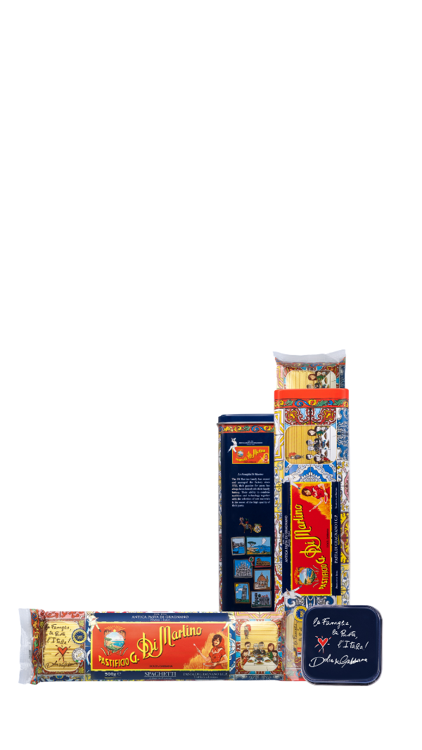 In occasione del World Pasta Day, Pastificio Di Martino e Dolce&Gabbana lanciano due nuovi cofanetti esclusivi: “La Pummarola” e “Midnight Pasta”, la confezione in latta da 1 kg perfetta per una spaghettata di mezzanotte tra amici. Un cofanetto che parla di amicizia, di quelle serate che non dovrebbero finire mai, piene di risate fragorose e storie da raccontare. Per fermare il tempo insieme, tra una chiacchiera e una forchettata di Pasta Di Martino. La collaborazione tra i due brand, nata nel 2017, ha visto Dolce&Gabbana ridisegnare l'immagine della Pasta Di Martino per celebrare l'eccellenza italiana attraverso i colori, i simboli e i monumenti del Bel Paese.