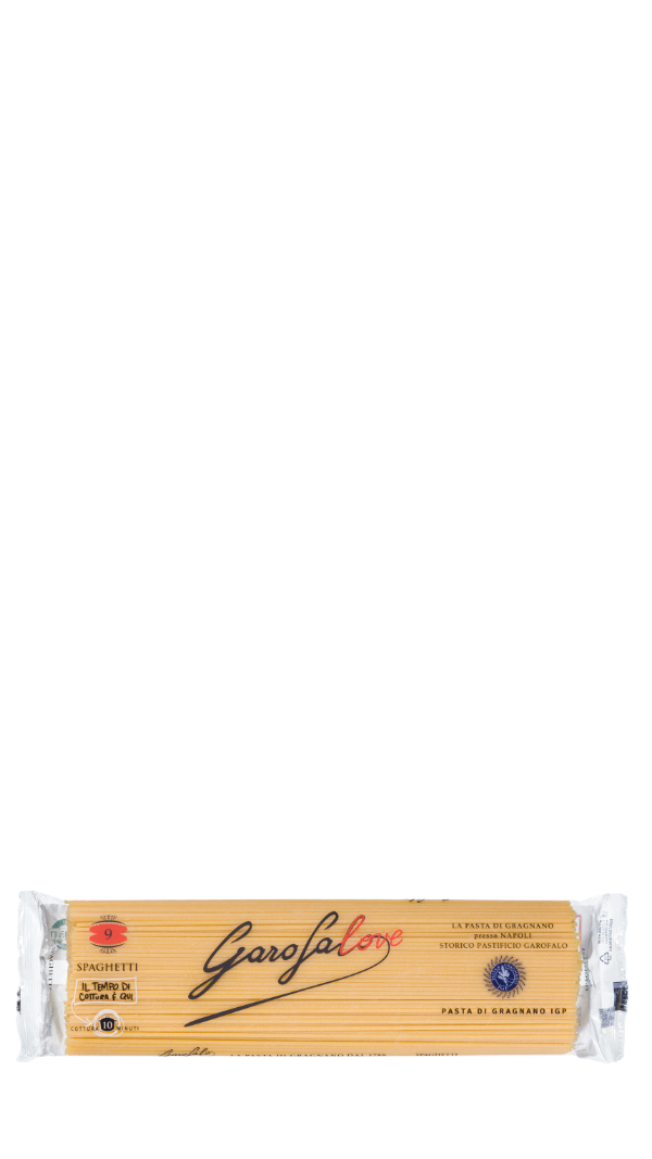 Con l’inedita grafica Garofalove, che richiama la nuova campagna pubblicitaria, gli Spaghetti Garofalo IGP presentano una forma lunga e sottile e una sezione tonda. Ruvidi al tatto, grazie alla lavorazione con trafilatura al bronzo, trattengono perfettamente i condimenti e consentono infiniti abbinamenti grazie alla loro versatilità.