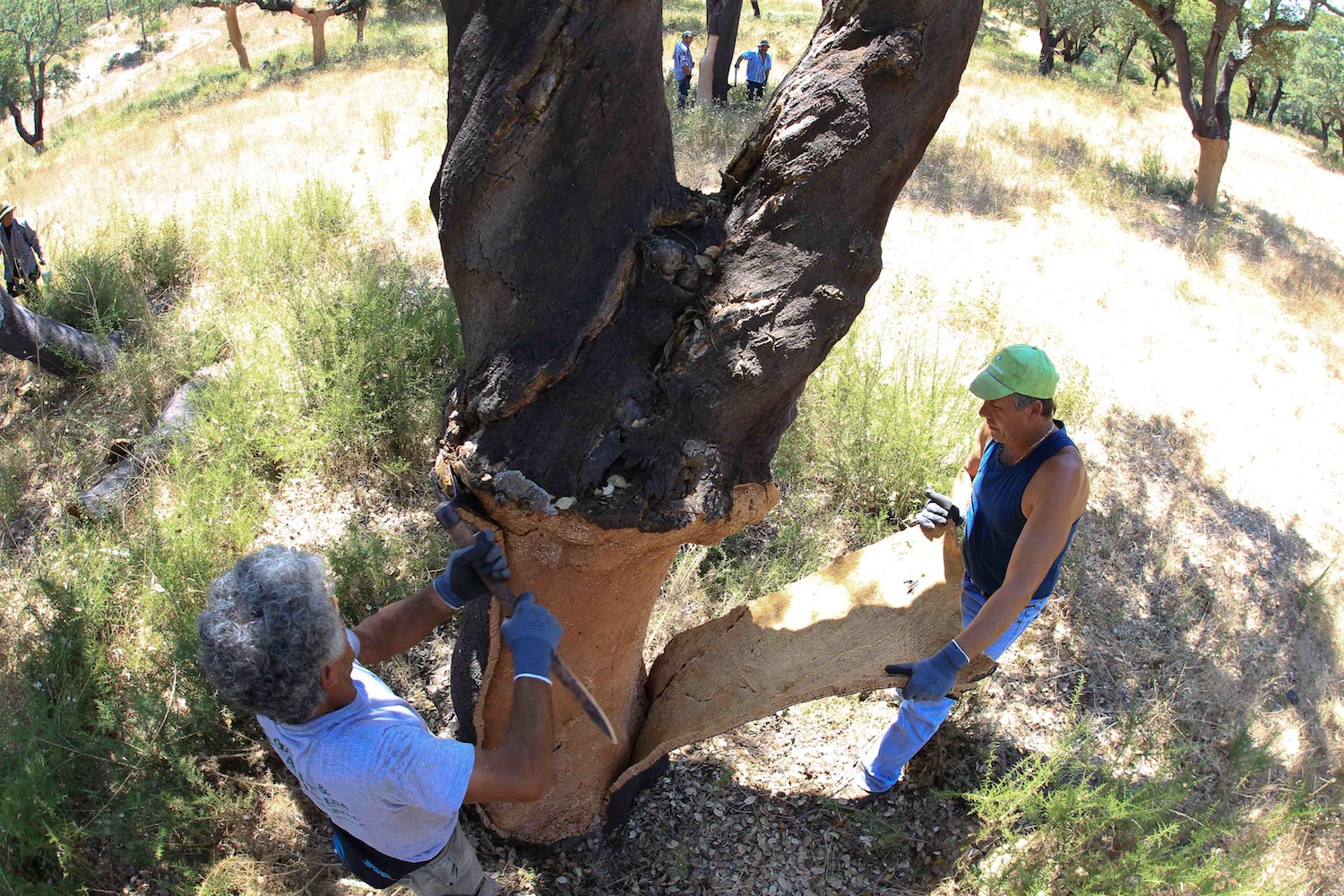 La quercia da sughero è una pianta di poche pretese. Cresce su terreni poveri (ad esempio aridi o sabbiosi), richiede poca acqua e un clima caldo. Quindi, è decisamente mediterranea. E infatti la si trova in 2,2 milioni di ettari nella fascia che va dalla penisola iberica fino alla Croazia, passando per l’Italia e l’Africa settentrionale. Oggi il paese più importante è il Portogallo, che fornisce la metà di tutto il sughero prodotto al mondo. L’Italia, invece, si ferma al 3,1% della produzione mondiale, con un prodotto destinato ad altri usi (ad esempio quello bianco che cresce in Sardegna è utilizzato per la carta delle sigarette). Certo, ottenere un buon sughero non è facile: ci vogliono tempo, pazienza e cura. E investimenti pluriennali: le querce da sughero vivono sì fino a 200 anni (la più vecchia si trova in Portogallo e ha ben 234 anni) ma hanno bisogno di 25 anni per dare il primo “raccolto”. E da un taglio della corteccia dell’albero (la cosidetta decortica) a quello successivo occorre attendere altri nove anni. Entrando in una sughereta, tra maggio e luglio, quando la linfa emerge tra il fusto della pianta e la sua corteccia, si vedono i lavoratori intenti a “snudare” le querce con le loro particolari asce dai bordi arrotondati: prima incidono la corteccia e poi la tolgono con un colpo deciso, possibilmente tutta intera. Sembra un’operazione aggressiva ma in realtà fa bene alle querce: infatti, togliendo solo la parte superficiale della corteccia, la linfa si rigenera e la corteccia si riforma in modo naturale. E con tutta calma.