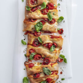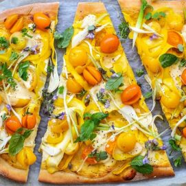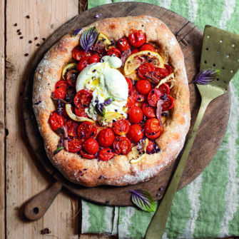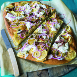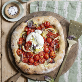 Street food o piatto gourmand, questa pizza evoca sapori e profumi mediterranei. Home made, è perfetta per una serata in compagnia