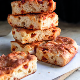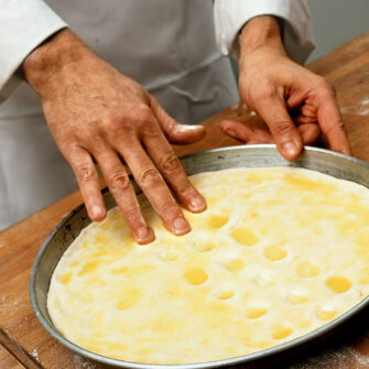 Con doppia dose di pasta da pane, è arricchita con pecorino fresco e pecorino piccante. Un po' dolce, un po' sapida