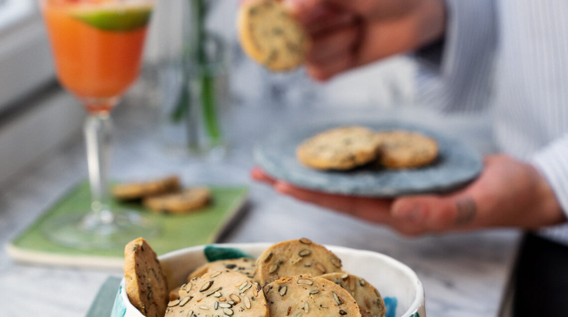 I biscotti salati con le noci sono deliziosi per accompagnare verdure crude o cotte in alternativa ai grissini. Creativi e profumati i biscotti al profumo di mirto sono farciti con ricotta di pecora.