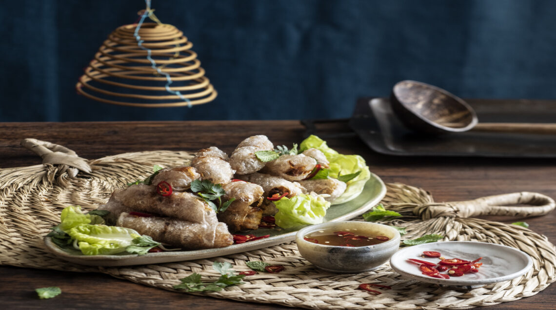 Un antipasto croccante di piccoli involtini fritti di carta di riso, farciti con funghi, carne, spaghetti di soia. Da accompagnare con una piccante salsa di pesce